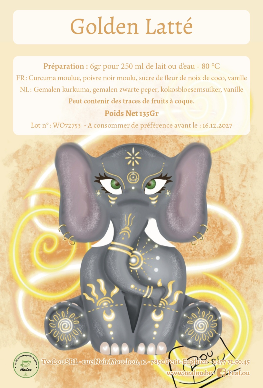 curcuma, poivre noir moulu, sucre de fleur de noix de coco, vanille.